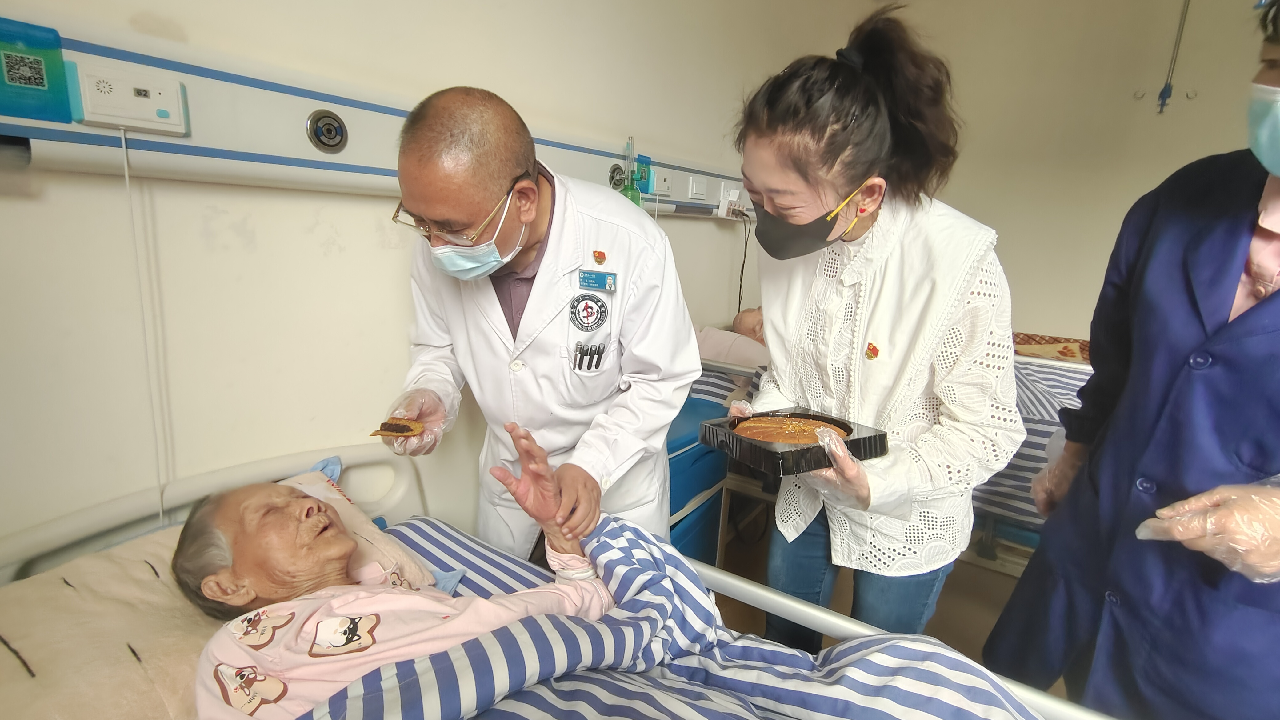 月圆中秋情意浓,在中秋佳节来临之际,院领导梁少勇、党支部书记白吉斌带领全体党员深入昆明三一一养老护理院慰问百岁老人。